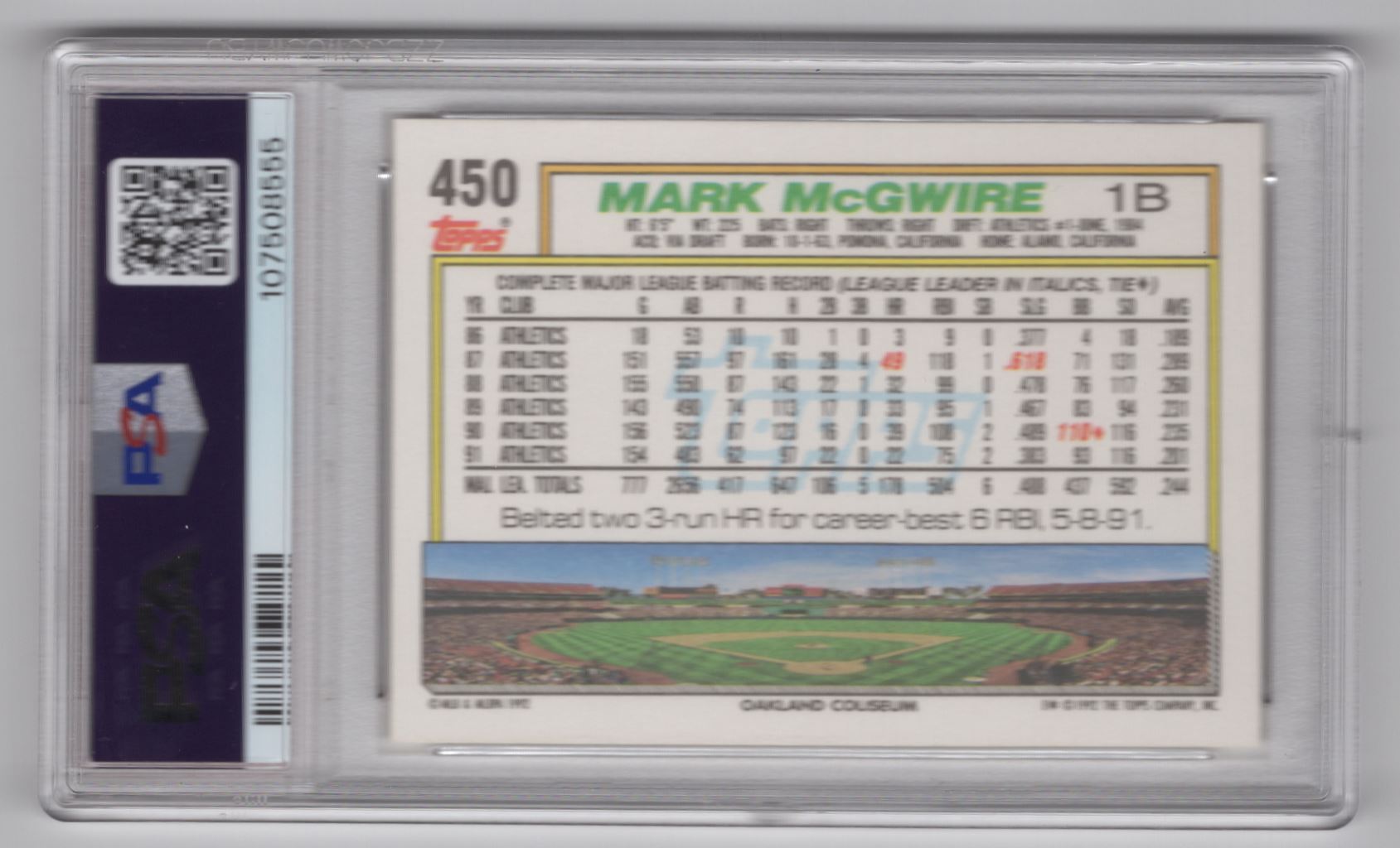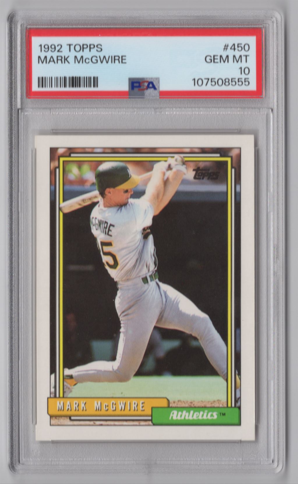 | 1992 TOPPS MARK MCGWIRE PSA 10 OAKLAND ATHLETICS #450 PERFECT PSA 10 NONE HIGHER |