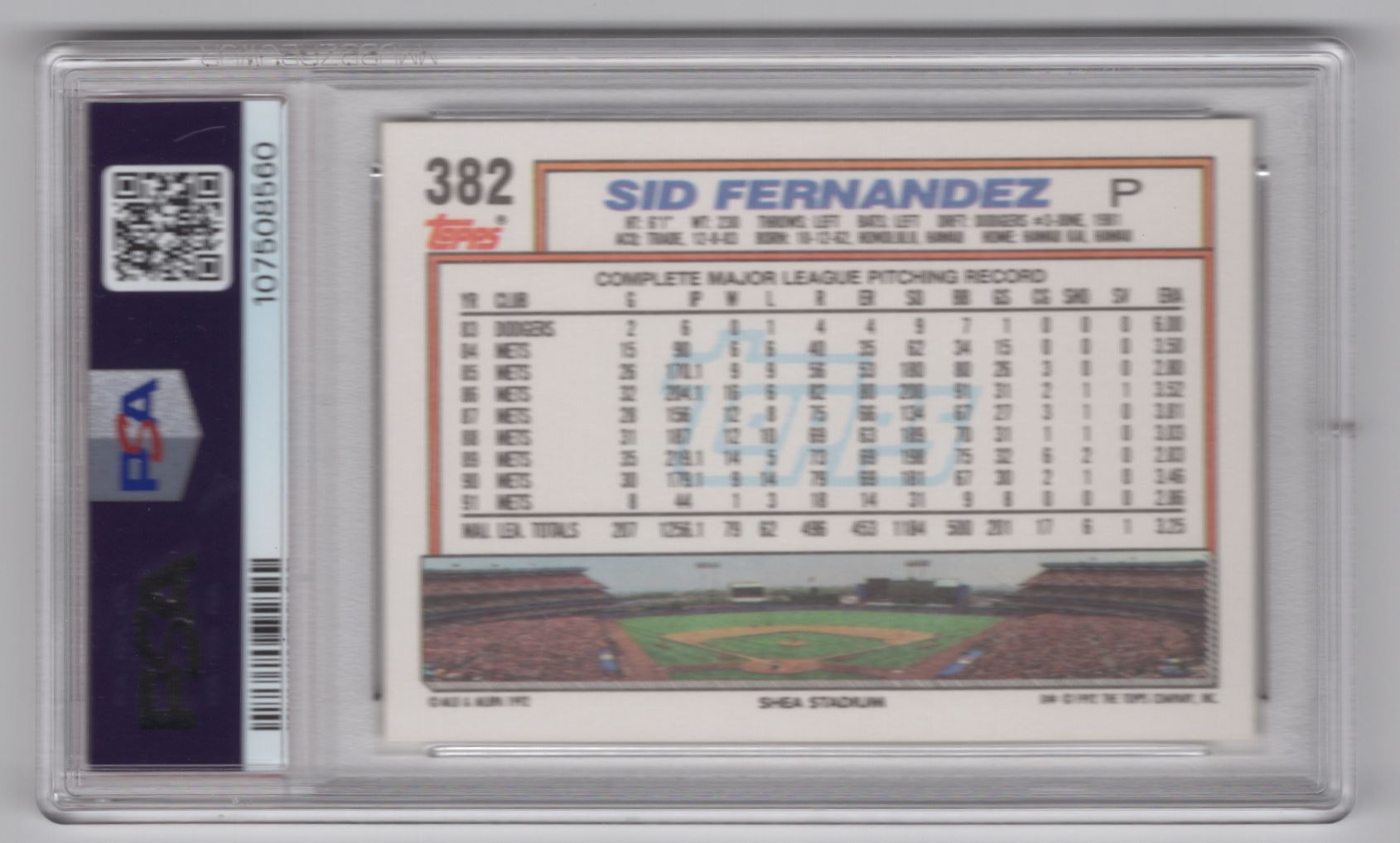 | 1992 TOPPS SID FERNANDEZ PSA 9 NEW YORK METS #382 POP 4 ONLY 3 HIGHER |