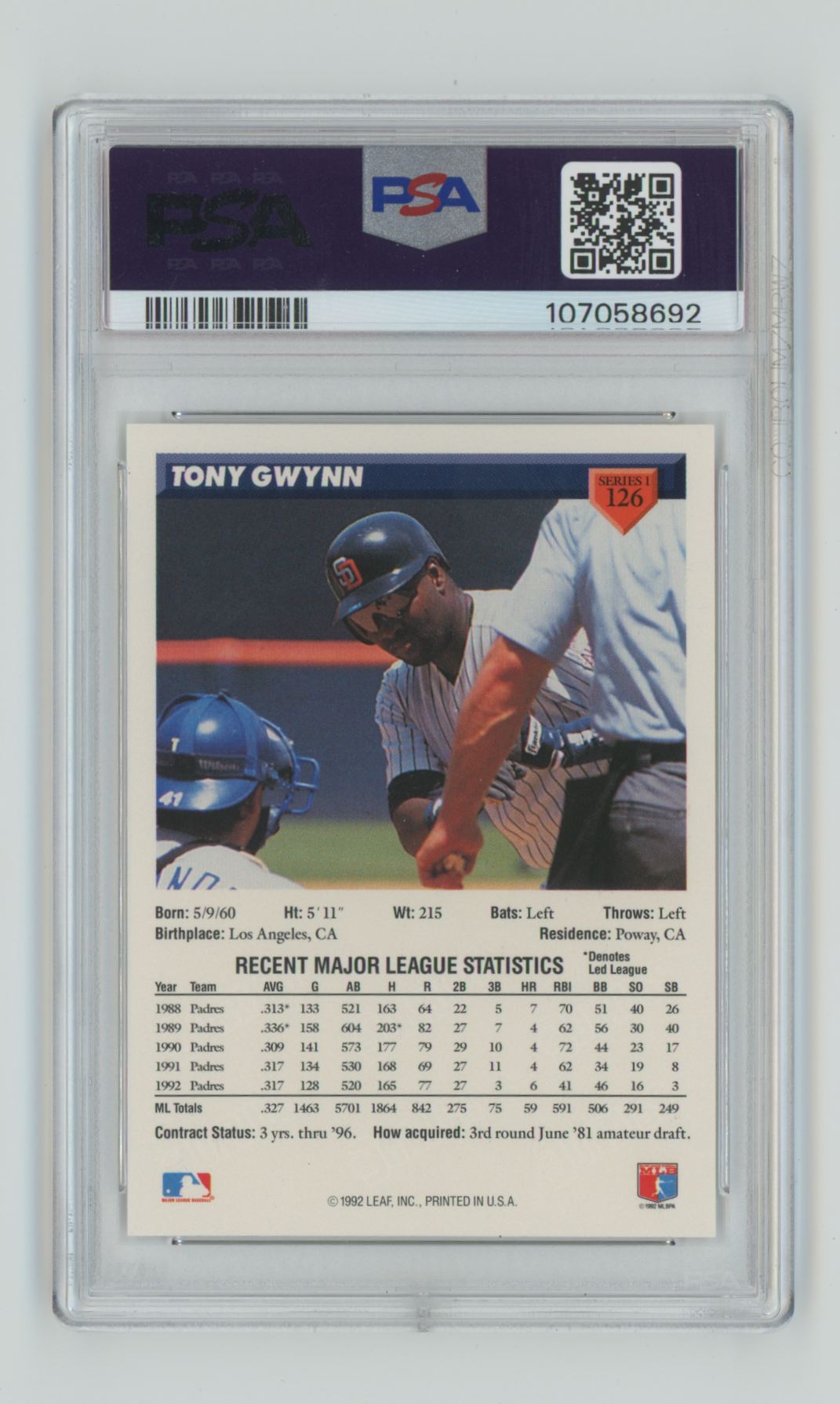 | 1993 DONRUSS TONY GWYNN PSA 8 SAN DIEGO PADRES #126 POP 4 ONLY 36 HIGHER |