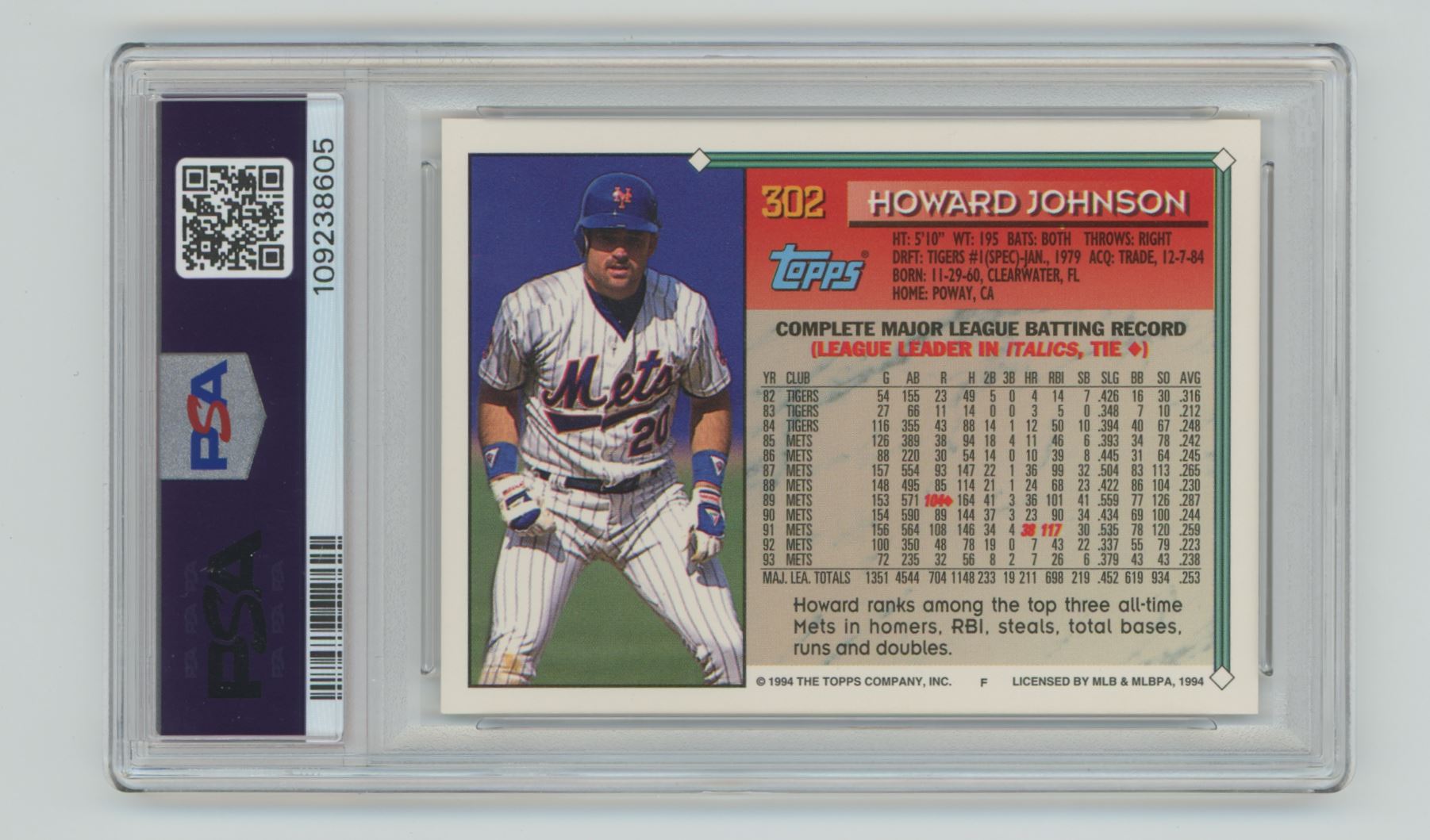 | 1994 TOPPS HOWARD JOHNSON PSA 9 NEW YORK METS #302 POP 2 W/ ZERO HIGHER |