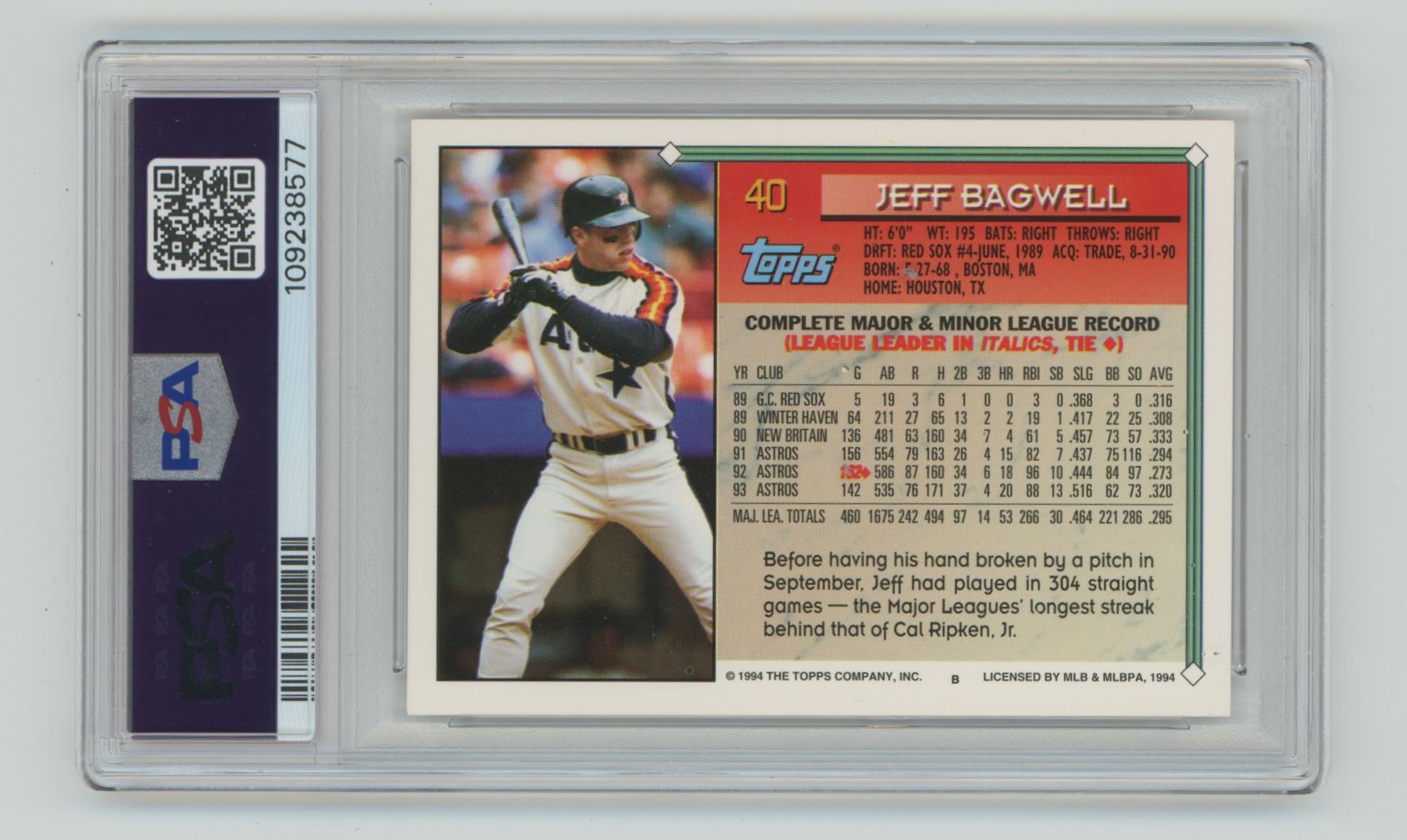 1994 TOPPS JEFF BAGWELL PSA 7 HOUSTON ASTROS #40 POP 4, TOTAL POP 77