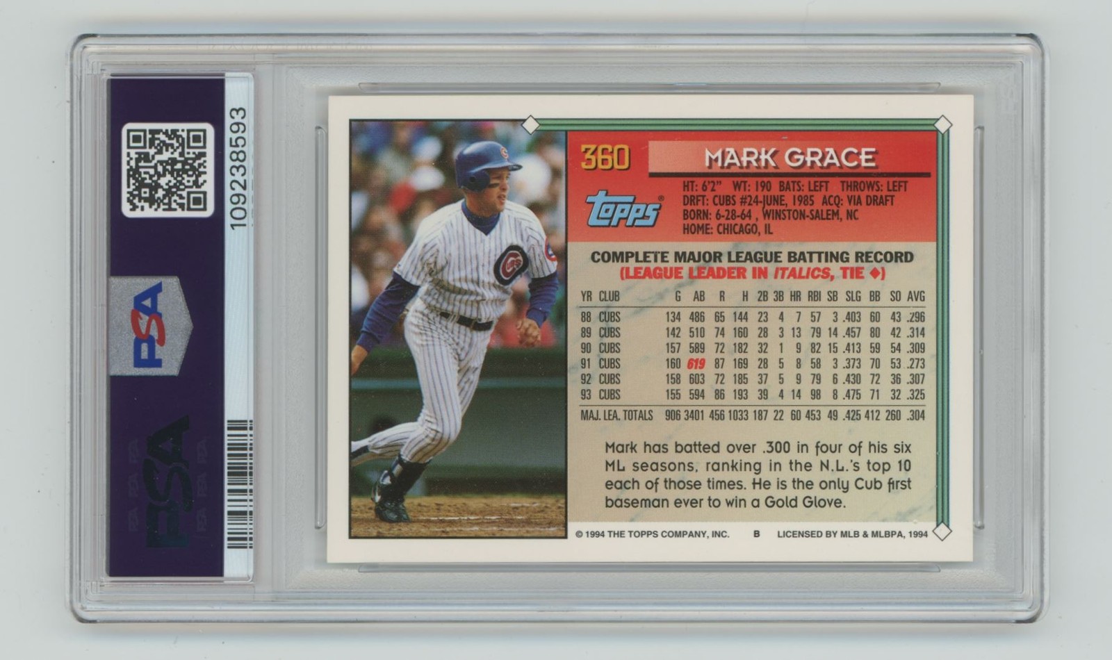 | 1994 TOPPS MARK GRACE PSA 8 CHICAGO CUBS #360 POP 2, TOTAL POP 19 |