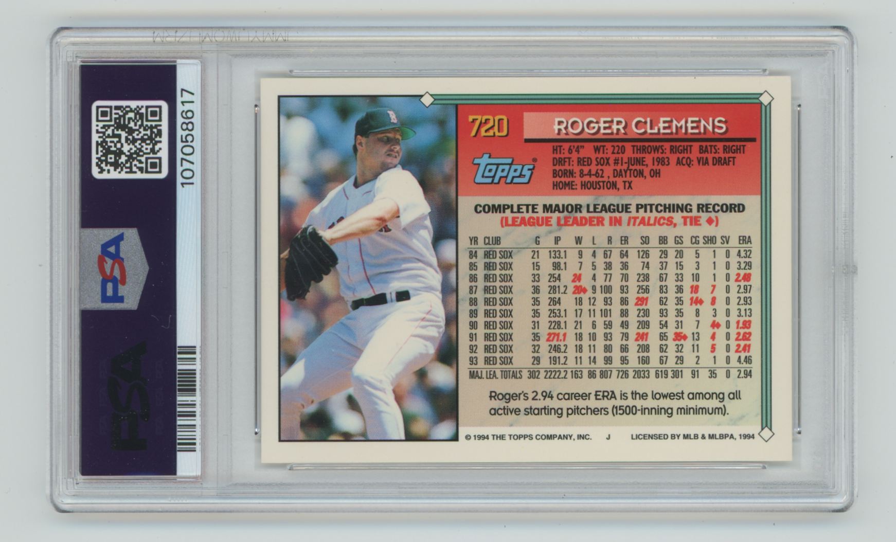 | 1994 TOPPS ROGER CLEMENS PSA 6 BOSTON RED SOX #720 TOTA L POP 85 |
