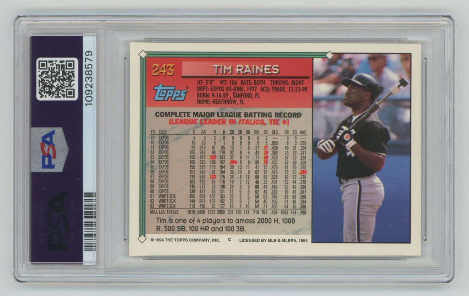 | 1994 TOPPS TIM RAINES PSA 7 CHICAGO WHITE SOX #243 POP 1, TOTAL POP 42 |