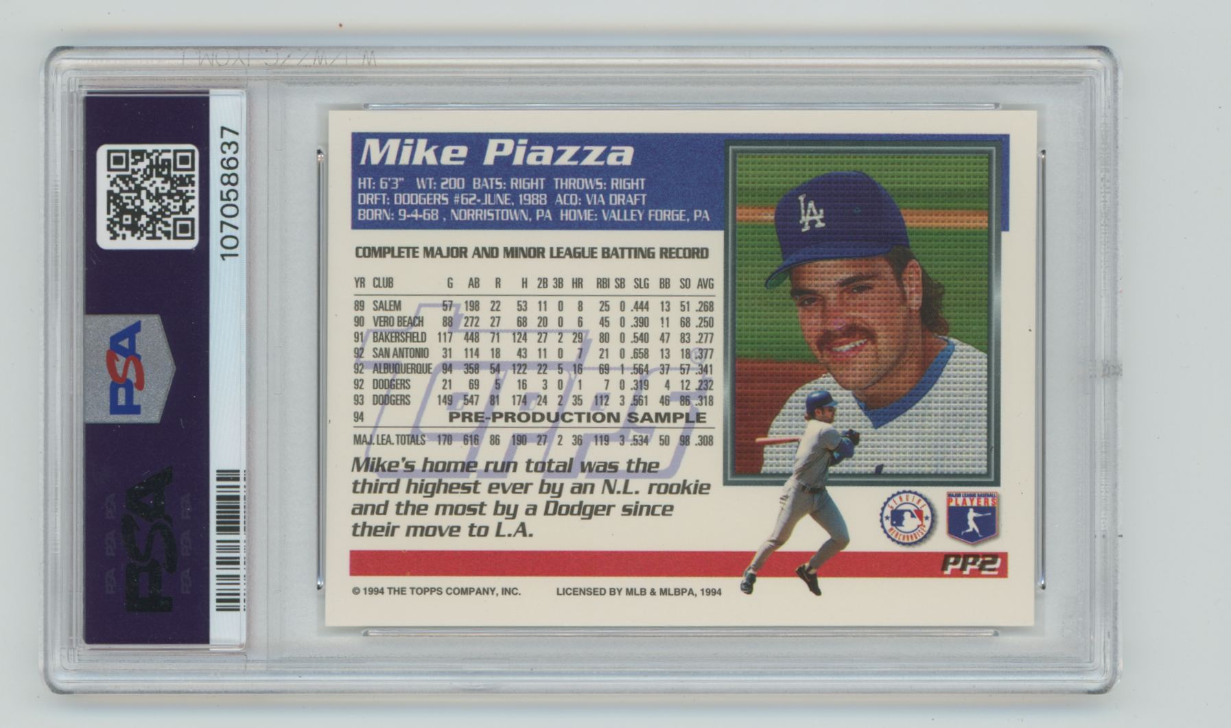 | 1995 TOPPS 1995 PRE-PRODUCTION MIKE PIAZZA PSA 9 LOS ANGELES DODGERS #PP2 TOTAL |