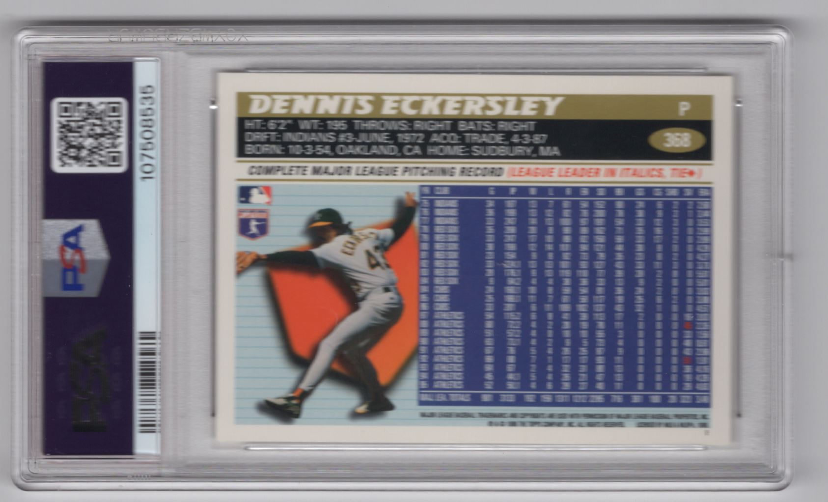 | 1996 TOPPS DENNIS ECKERSLEY PSA 9 OAKLAND ATHLETICS #368 POP 16 |