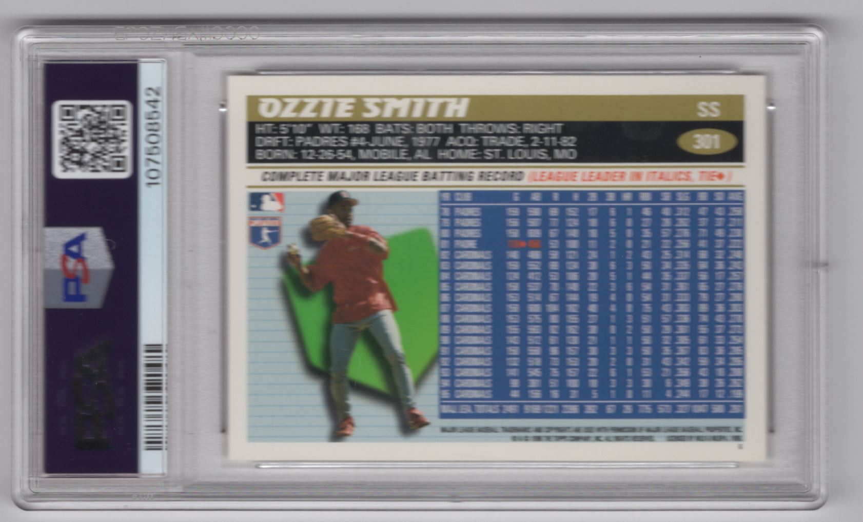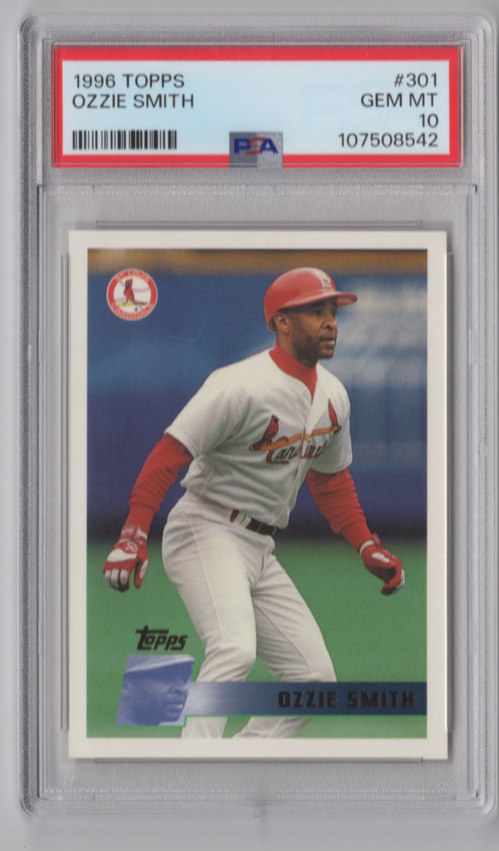1996 TOPPS OZZIE SMITH PSA 10 ST. LOUIS CARDINALS #301 PERFECT PSA 10