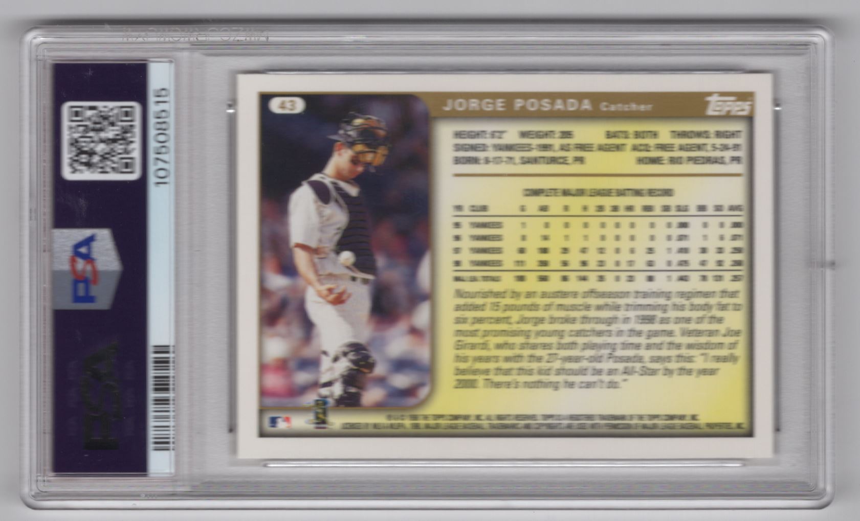 1999 TOPPS GOLD JORGE POSADA PSA 8 NEW YORK YANKEES #43 POP 1 ONLY 19 HIGHER