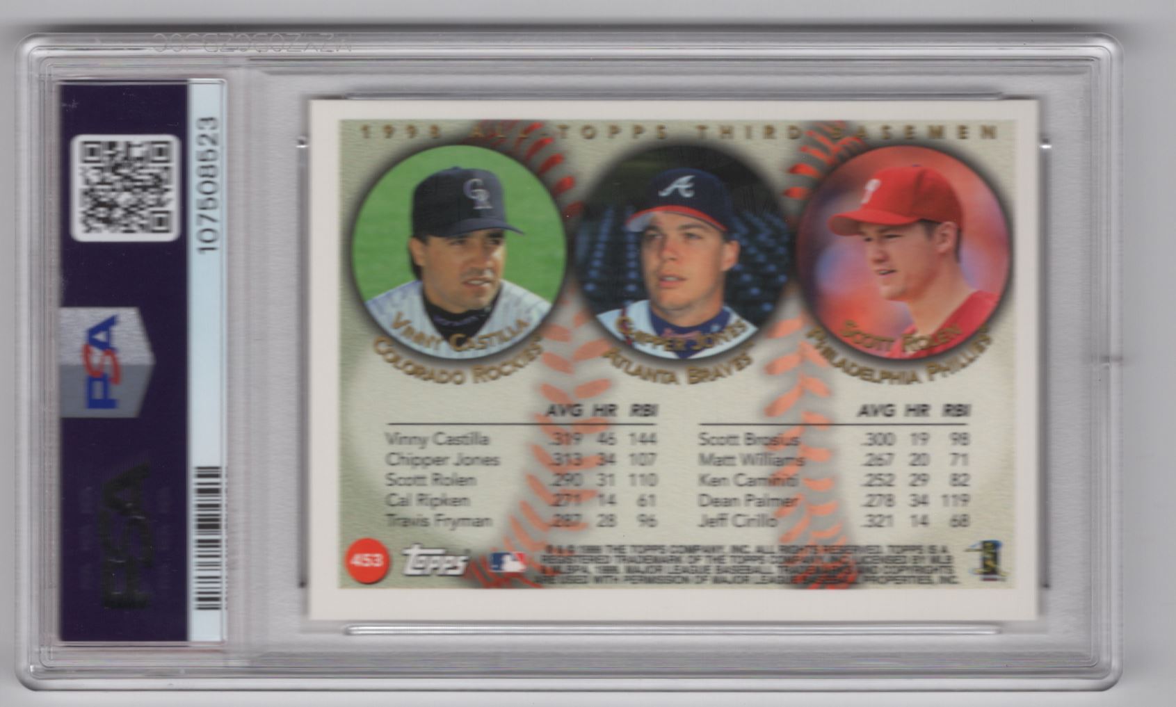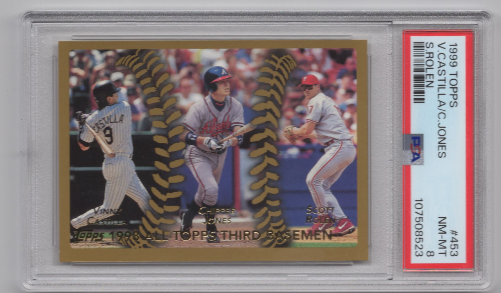 1999 TOPPS GOLD VINNY CASTILLA CHIPPER JONES SCOTT ROLEN PSA 8 COLORADO ROCKIES