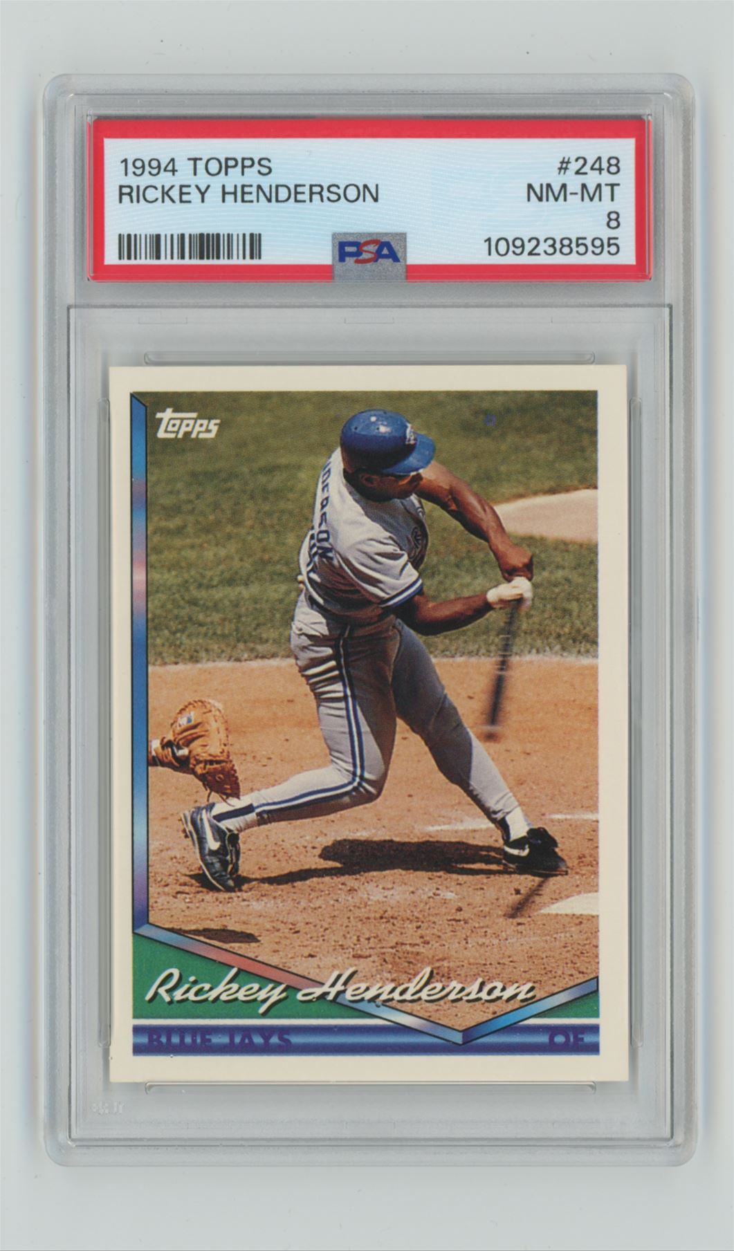 | 1994 TOPPS RICKEY HENDERSON PSA 8 TORONTO BLUE JAYS #248 | ||||||||||||||||||